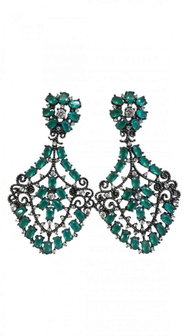 O contraste entre o verde intenso das esmeraldas e o acabamento escuro do ródio negro proporciona um visual moderno, sofisticado e extremamente luxuoso — perfeito para ocasiões especiais ou para elevar qualquer produção noturna.