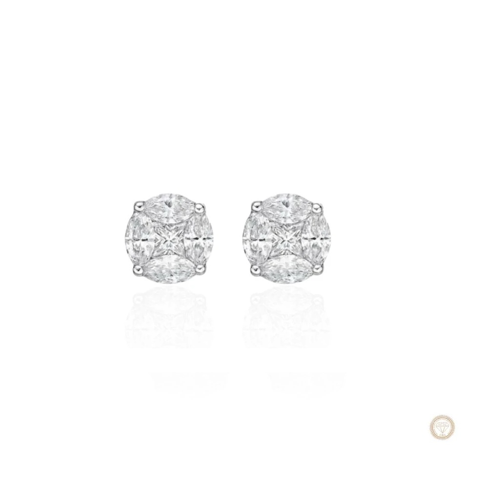Composto por 8 pedras cuidadosamente lapidadas, sendo Marquise (3x6mm) e Quadradas centrais (3x3mm), o modelo cria um efeito visual de maior volume e luminosidade — conhecido como efeito illusion, que potencializa o brilho semelhante ao diamante.