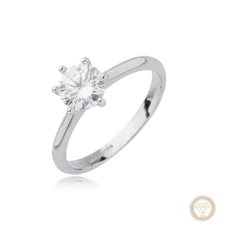 O Anel Solitário de Moissanite com pedra 6mm ( 0,8ct) em Prata 925 é a expressão máxima de elegância e sofisticação.