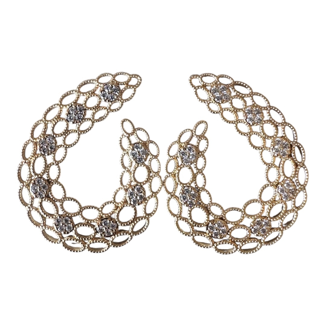 Com formato de argola aberta, a peça apresenta um trabalho minucioso vazado, criando um efeito rendado leve e moderno. As zircônias cravejadas estrategicamente proporcionam pontos de brilho que iluminam o rosto com sutileza.